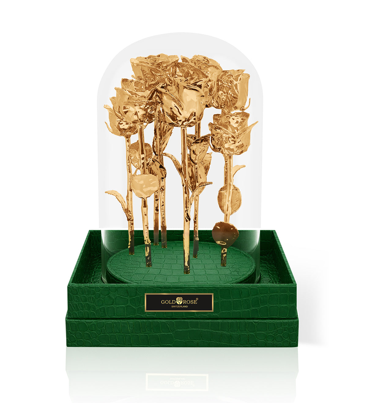 Crafted in Switzerland — a country synonymous with precision and excellence — our Gold Roses begin their journey as fresh, handpicked roses, carefully selected at the peak of their natural beauty. Each rose undergoes a meticulous 26-day preservation and metallization process, during which it is permanently encased in pure 24-karat gold.